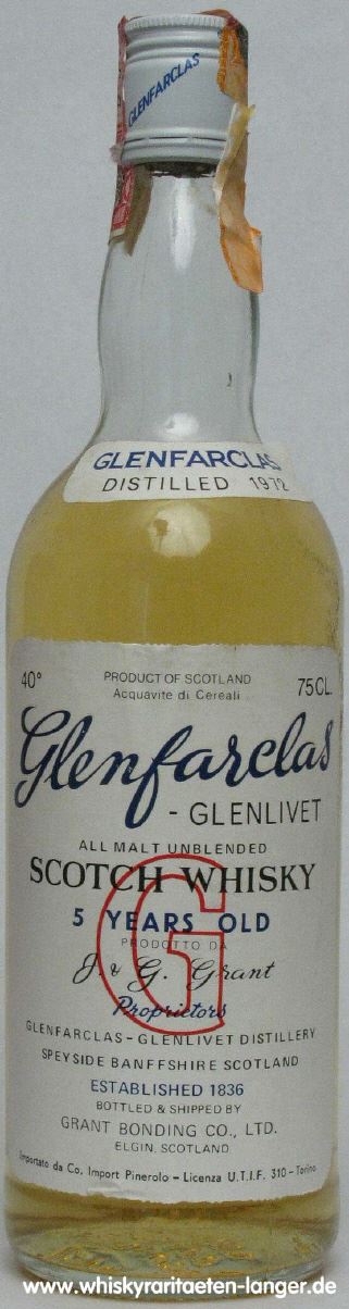 tall bottle,«Glenfarclas» in blue and with red «G»